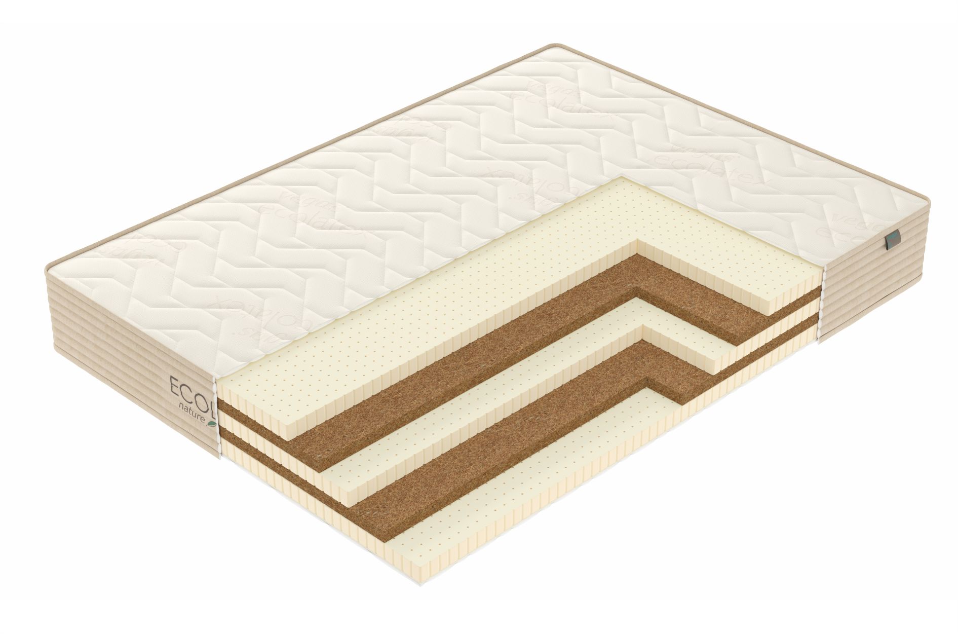Кокосовая койра (x3)4Натуральный материал, состоящий из спрессованных волокон кокосового ореха. Слои из прочной и долговечной кокосовой койры используются для придания матрасу дополнительной жесткости.