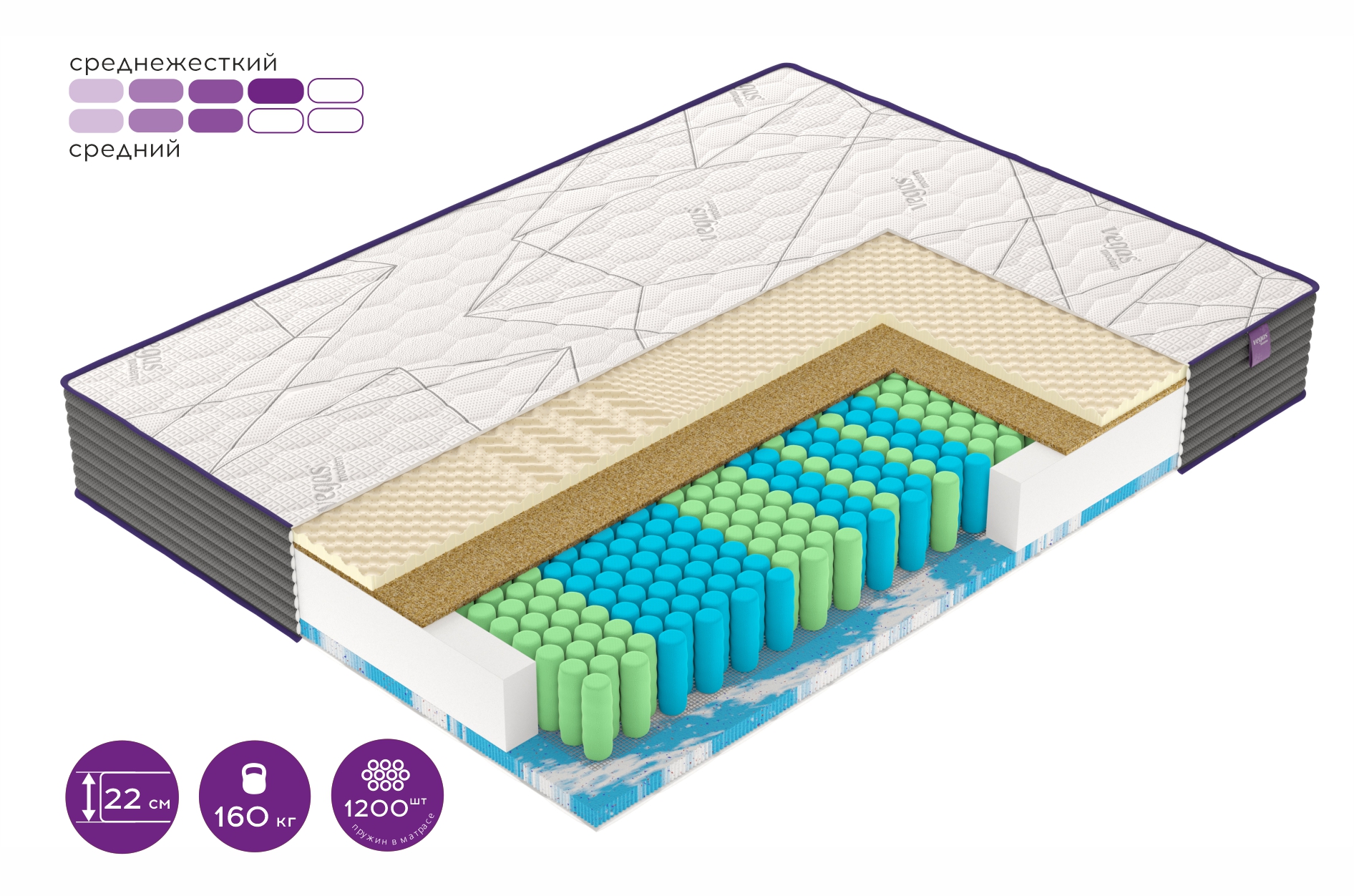 Medizone X12004Уникальный блок независимых пружин из стали с выраженными зонами. Сбалансированное распределение зон по длине матраса наиболее эффективно учитывает анатомию тела человека. Шахматное расположение пружин увеличивает допустимую нагрузку. Диаметр пружины 60 мм. Высота пружинного блока 140 мм.