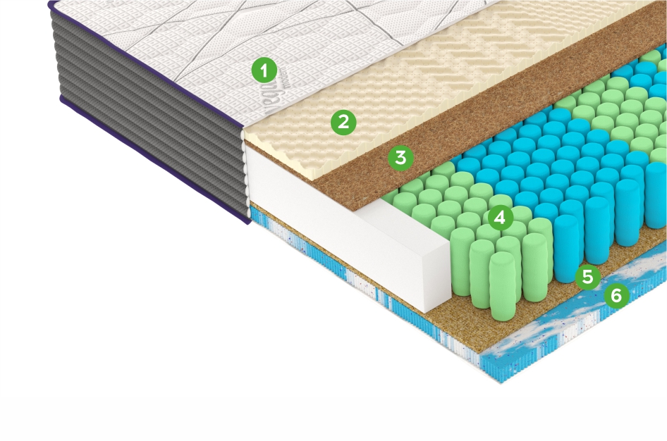 Натуральный материал, состоящий из спрессованных волокон кокосового ореха. Слои из прочной и долговечной кокосовой койры используются для придания матрасу дополнительной жесткости. -