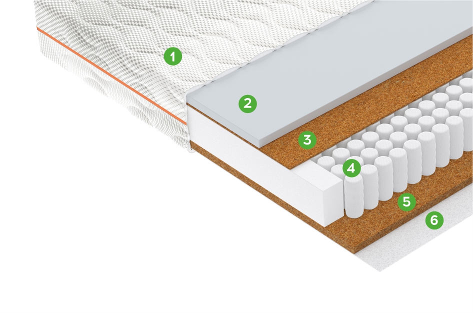 Натуральный материал, состоящий из спрессованных волокон кокосового ореха. Слои из прочной и долговечной кокосовой койры используются для придания матрасу дополнительной жесткости.