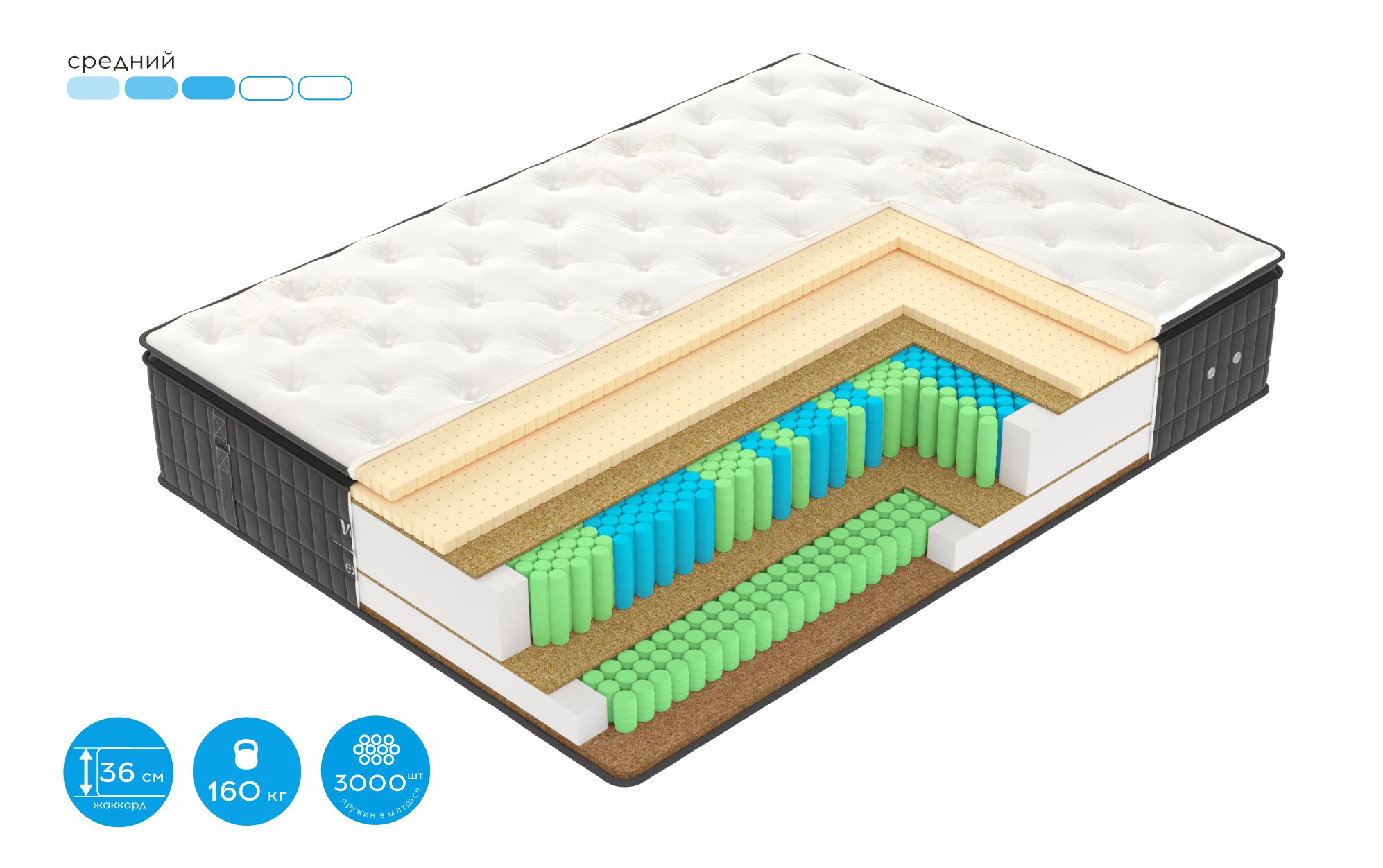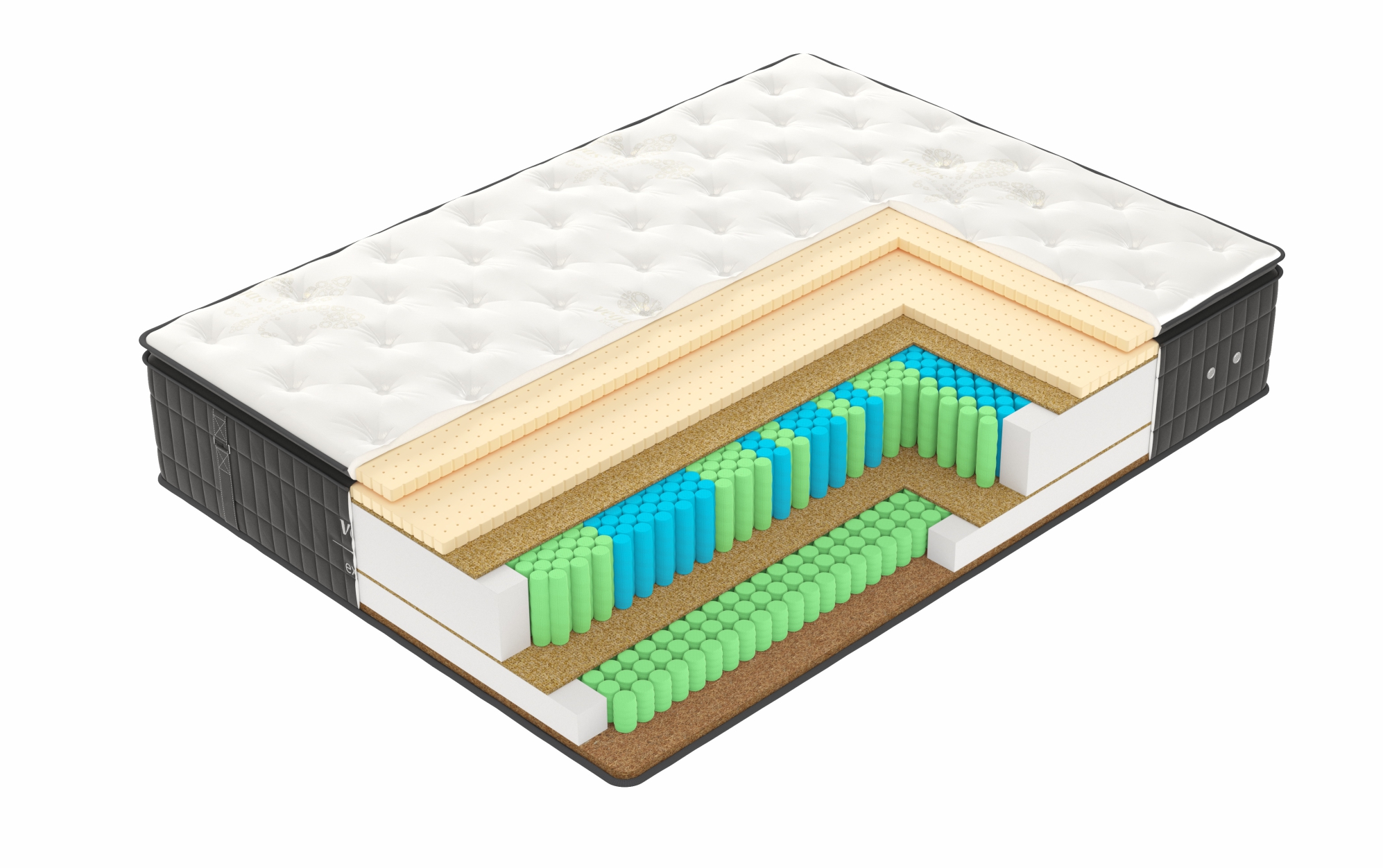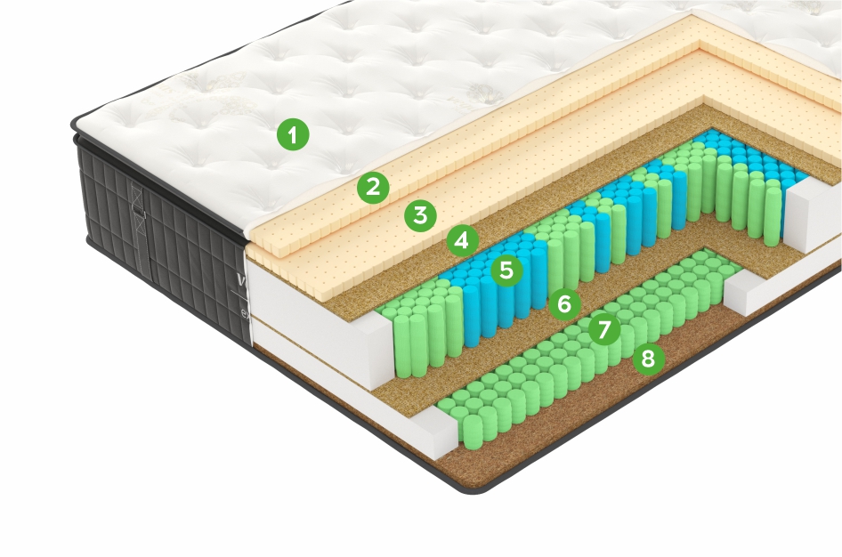Кокосовая койра (x2)8Натуральный материал, состоящий из спрессованных волокон кокосового ореха. Слои из прочной и долговечной кокосовой койры используются для придания матрасу дополнительной жесткости.